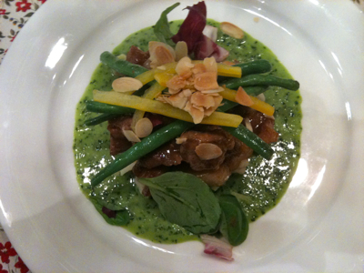 バジルのソースは塩系、お肉は甘辛系の味付けで、